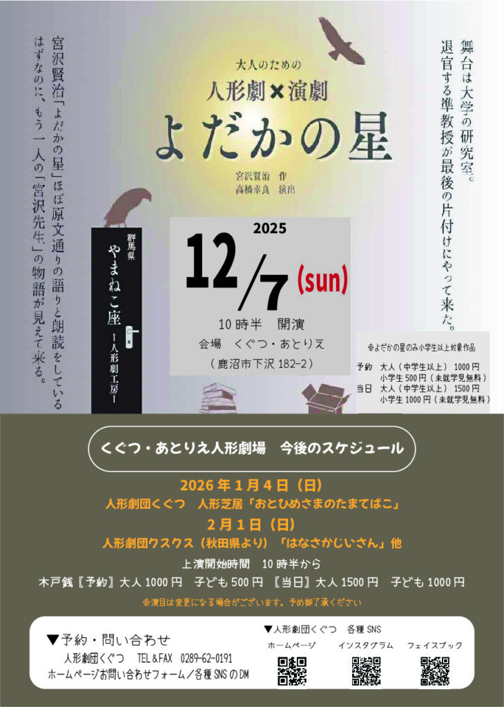 12月7日のくぐつ・あとりえ人形劇場は群馬県からやまねこ座が来ます!