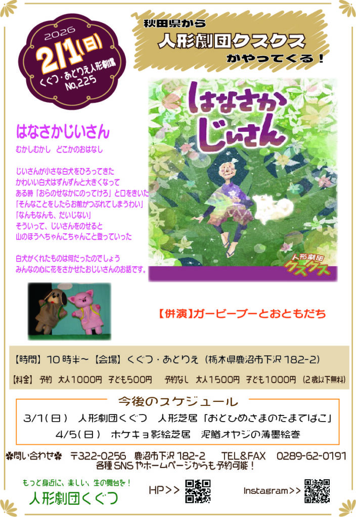 次回のくぐつ・あとりえ人形劇場は2月1日(日)
