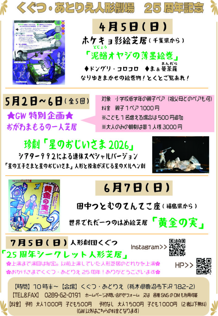 おかげさまで、くぐつ・あとりえ人形劇場が25周年となります。ありがとうございます。