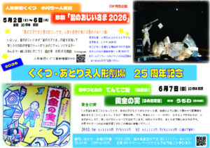3月26日(日)劇団「ぷりあらぽ」が「11匹のネコ」を上演いたします。 演劇初挑戦の大人から子どもまでが集まり、人形劇団くぐつプロデゥースのもと くぐつ・あとりえにてコツコツ稽古重ねてきました。 題名のろうどくげき×2分 […]